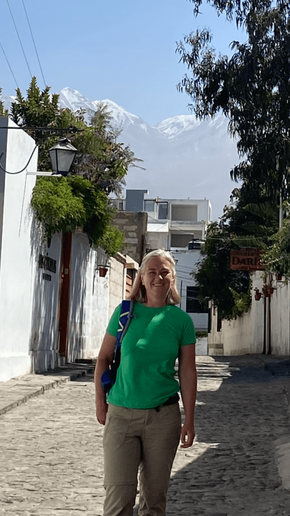 He was lovely and friendly, giving me the Wi-Fi password and not hassling me to pay up and leave once I’d finished my food and drink. Ideal as I was in the mood for just sitting for a while and planning out my bus transfer to Cabanaconde (for Colca Canyon) tomorrow – with possible departures at 4.30 and 12.30, prior to arrival in Arequipa I had been planning to book the civilised 12.30 bus but a combination of the heat, the traffic and the fact I’m still a bit jet lagged so waking up very early anyway, I’ve gone for the 4.30 booking. So it’ll be a very early start – but apparently the scenery on the drive is worth staying awake for!