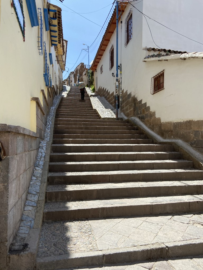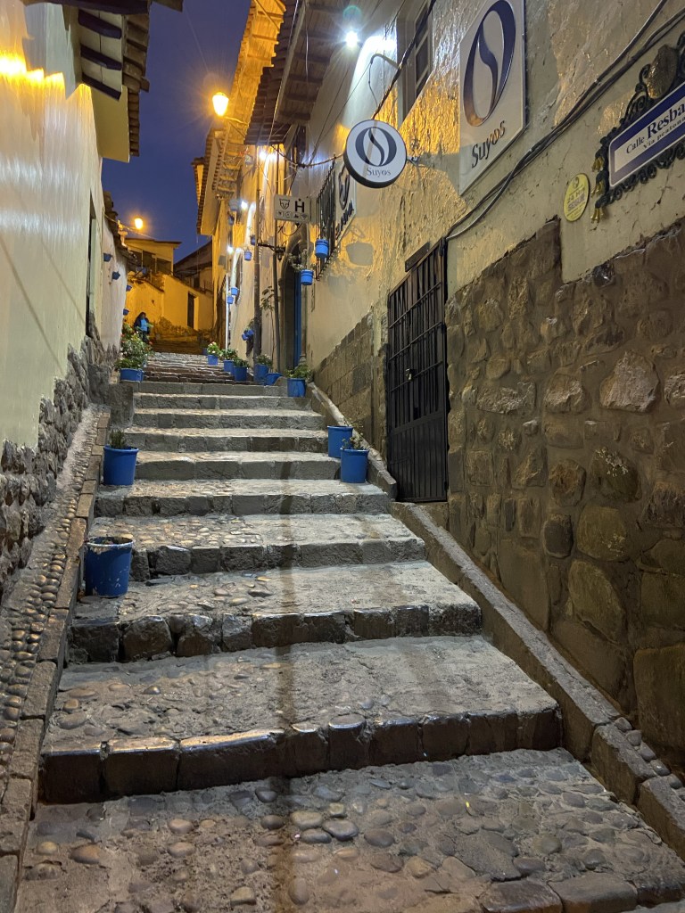 And wow, is there loads to explore! Cusco is a fascinating city with its mixture of Inca history, beautiful buildings and squares, tourist shops galore, a drugstore on just about every street (often multiple stores in the same street, all offering oxygen shots, coca remedies and various other treatments for altitude sickness or whatever else ails you). Yoga studios are found in abundance and you can’t walk through Plaza de Armas without at least 10 offers of a massage, and numerous attempts by local artists to flog their paintings. And of course the women in traditional Peruvian dress accompanied by baby alpacas who encourage tourists to pay to have a photo taken with them.