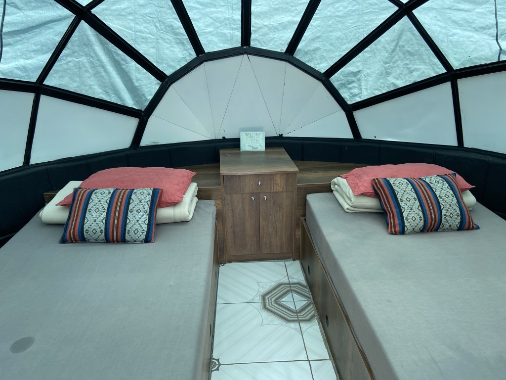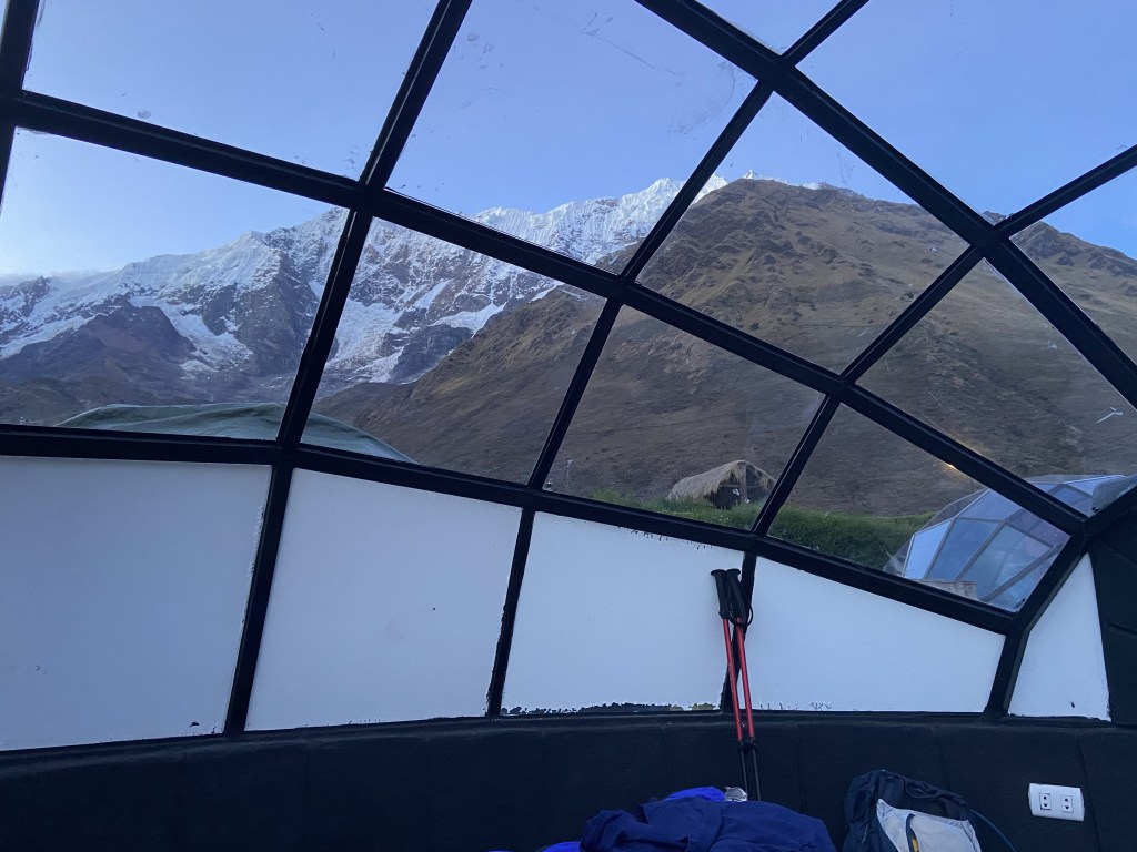 I wanted to do the trek as part of a group so booked through a tour company aptly named Salkantay Trekking. The company provided a really superb level of support – we had a pre-trek briefing the evening before the start of the trek, at which we were each given a duffel bag to fill with our clothing and personal belongings for the 5 days; the duffel bags were carried by donkeys along the route and returned to us each evening so that we only ever had to hike with a small day pack containing what we needed during the day. We had two chefs who provided sumptuous and delicious meals three times a day, and accommodation was in “Sky domes” or similar glamping pods, with the final night’s accommodation in a hotel in Aguas Calientes.