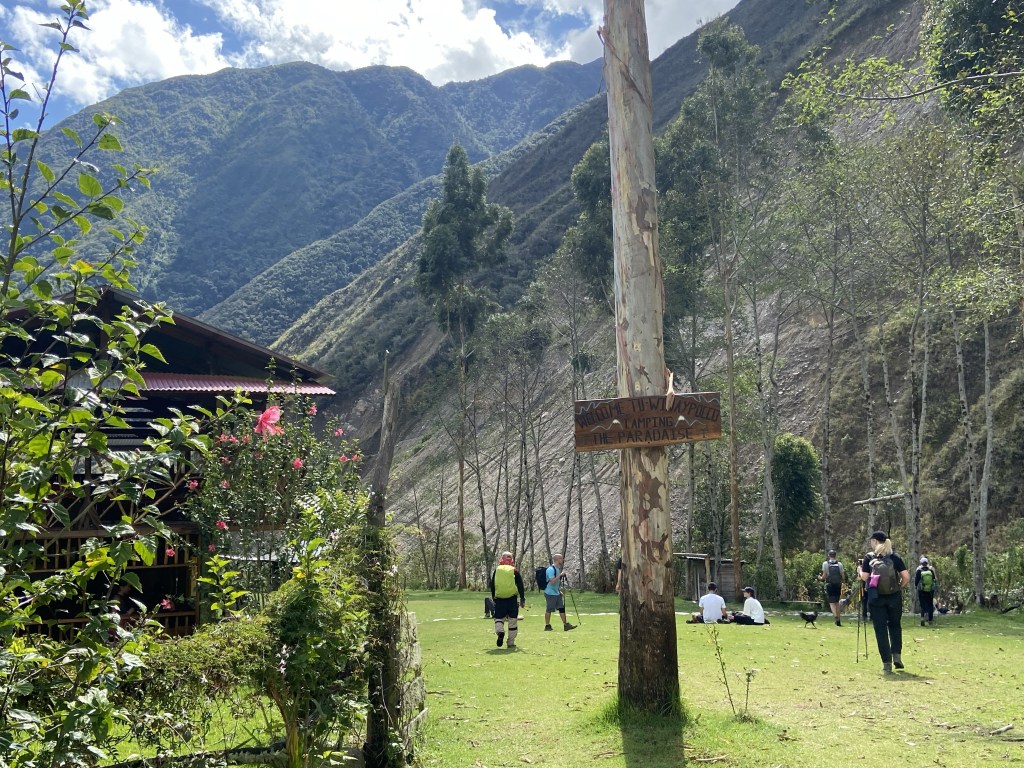 We stopped for lunch at an altitude of 3850m and finally I found my indigestion had cleared to the point where I could eat. From there we descended a further 900m through tropical rainforest to our very luxurious Mountain Sky View accommodation – bliss to finally be sleeping below 3000m, and with an en-suite bathroom rather than the communal toilet block we’d had the previous night. It had stopped raining by this stage, thankfully, and we had time to settle in and have a shower before heading to the campsite restaurant for dinner.
