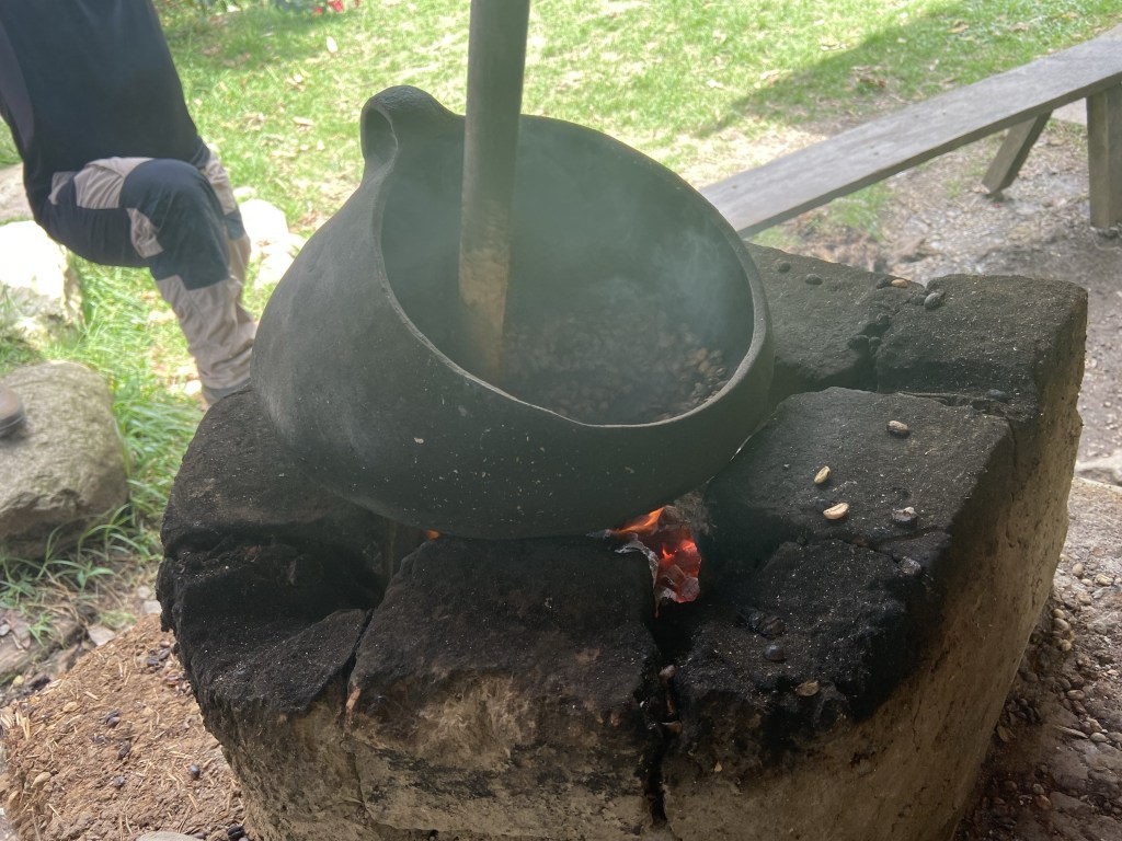 Day 3 was billed as a relatively easy day, with only 14km to hike, mostly flat or downhill. But it all had to be done by lunchtime to allow us to settle into our Jungle Domes campsite, have lunch and head off to some hot springs for some well-needed relaxation. So it was another 5 am start, and a fairly brisk pace to allow time to enjoy a photo stop at a magnificent waterfall, a mid morning picnic stop at a campsite selling delicious fresh fruit and juices, as well as a visit to a coffee farm where we actually got to roast, grind and brew our own coffee! There was a fair bit of exposure along this route, hiking along narrow paths cut into steep hillside, which some members of the group really didn’t enjoy, but all managed to cope admirably. There was also plenty of beautiful flora to admire on the less exposed sections.