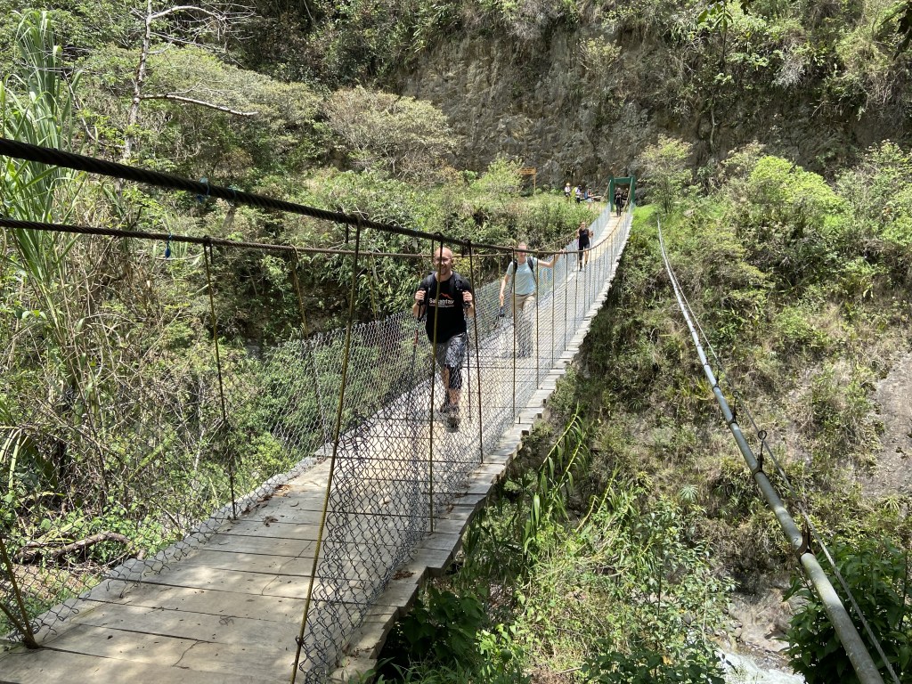 It was then a long descent to Aobamba for lunch, before the final 14 km hike out via Hidroelectrica to Aguas Calientes. We all enjoyed the walk over the suspension bridge to Hidroelectrica – a couple of girls in the group had a fear of heights and had been dreading it, but it’s a pretty sturdy bridge which, though a bit wobbly, doesn’t feel too perilous and affords beautiful views down the valley,