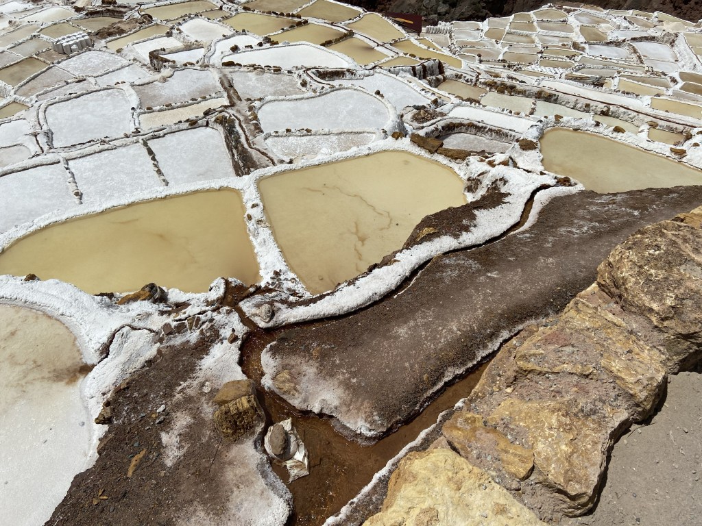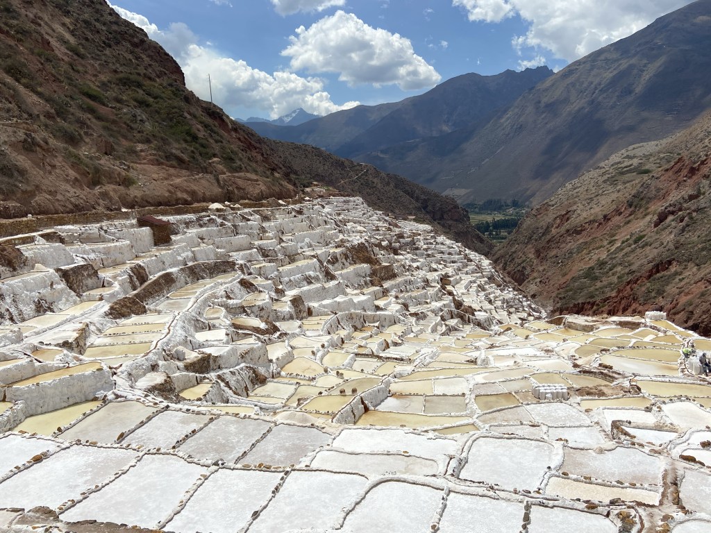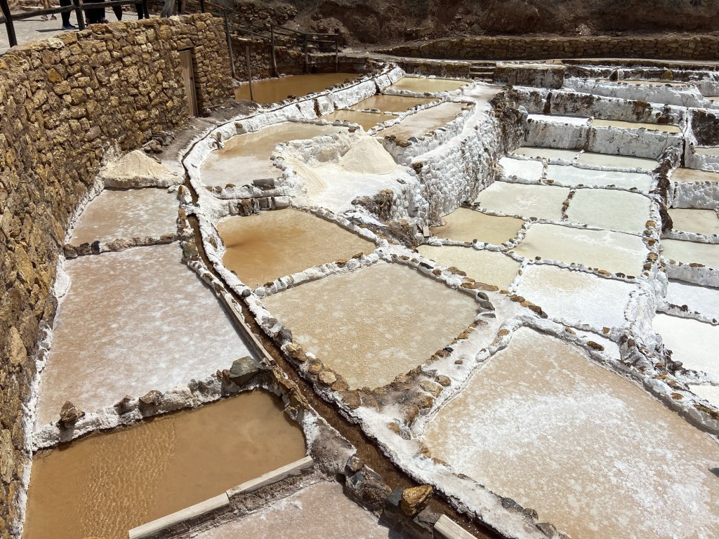 And from there on to the salt mines at Maras, which are absolutely spectacular. I had seen photos of them and not been overly excited about seeing them in person, but the photos I’d seen had been taken close up so hadn’t captured the surrounding scenery. It’s the contrast between the white of the mines and the colours of the surrounding mountains that I found so striking – as well as the way water is channeled through the area to produce the different-coloured salts. Definitely worth the visit!
