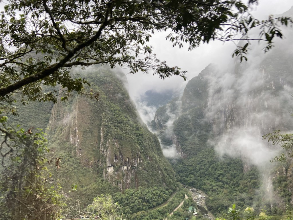It takes 25 minutes for the bus to wind its way up the hillside from Aguas Calientes to the entrance of Machu Picchu. It was raining lightly at this stage and the cloud was low, but as we got further up the hillside we got some dramatic views across the valley to neighbouring hills.