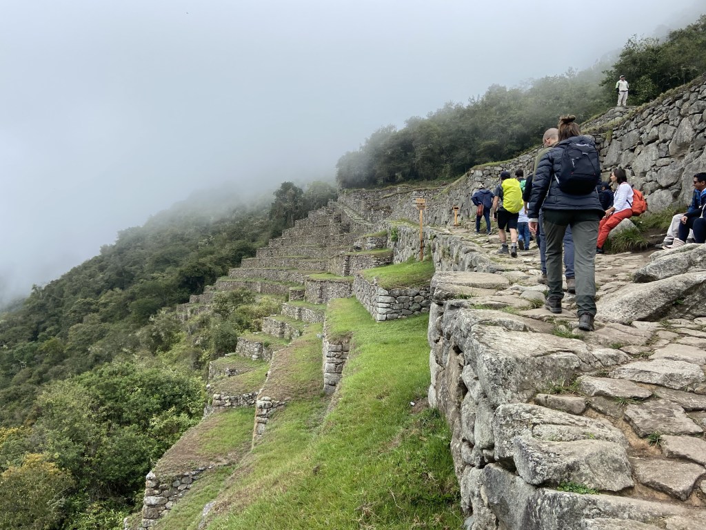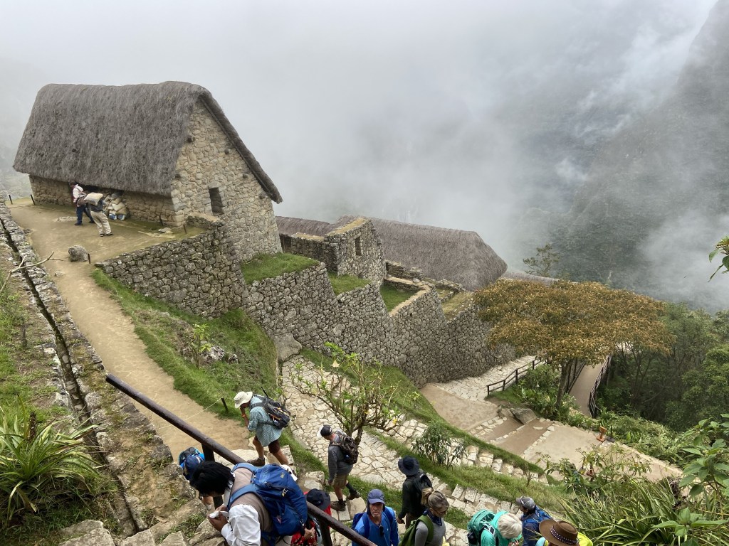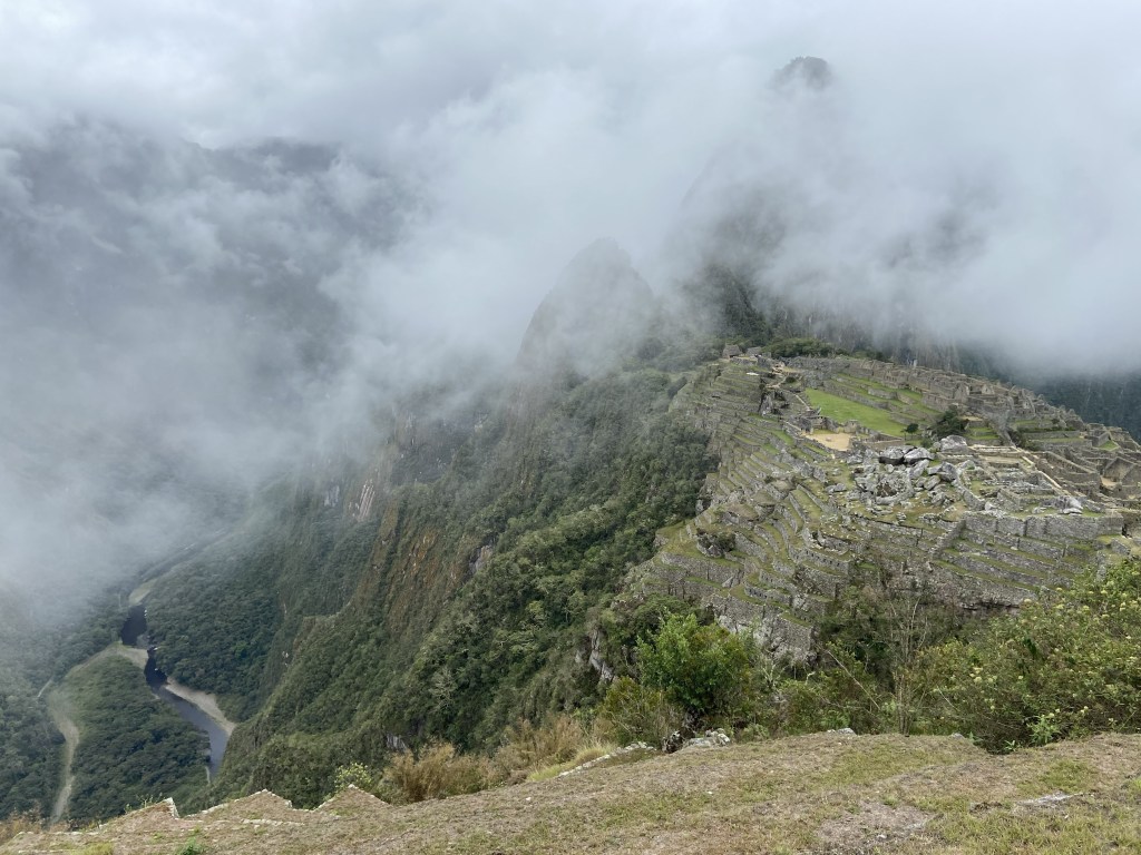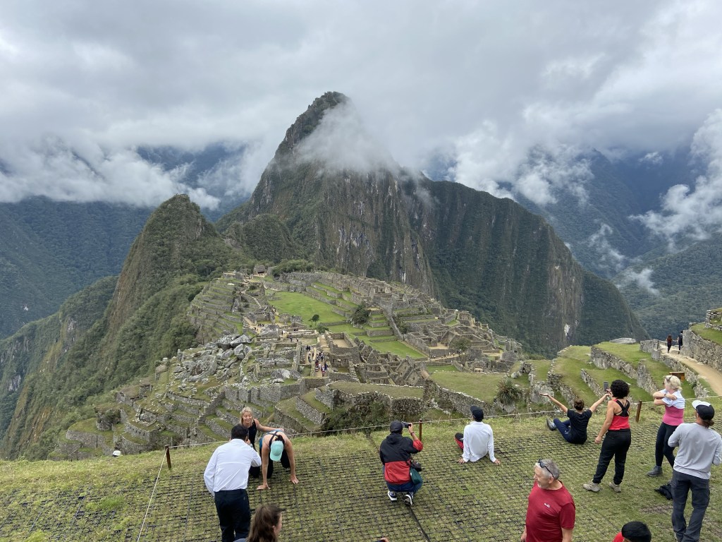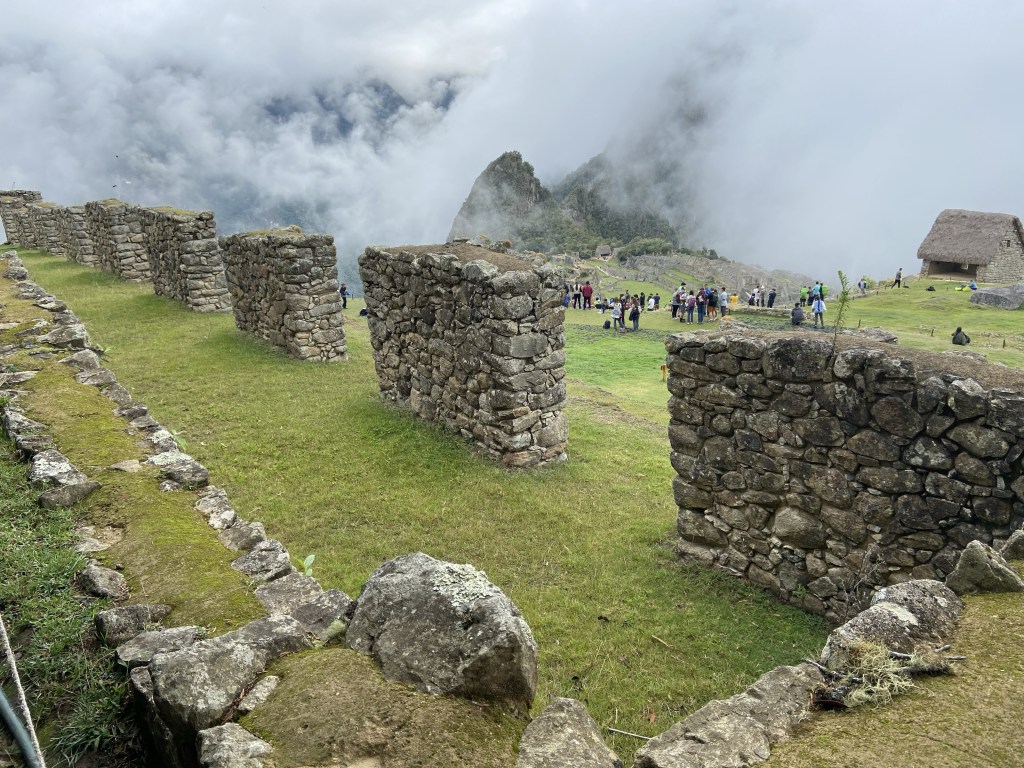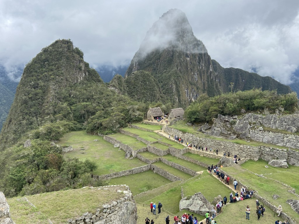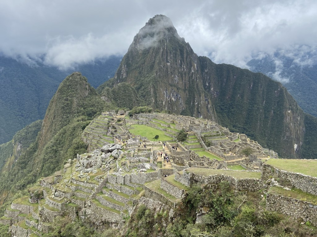 There is a large grassy area next to the main viewing platform, where guides tend to gather with their groups out of the way of those taking photos, to explain some of the history of Machu Picchu and the Inca empire. Our guide, Carlos, took this opportunity to rabbit on for a good 30-45 minutes, reeling off names of various Inca rulers and warriors which I’m afraid to say went straight over my head. A few people in the group were fully engaged and asking questions but I could tell many of the others were getting as frustrated as I was – particularly as the views had cleared up and then started to cloud over again during this time! And the crowds were starting to build, too. I had been regularly wandering over to the edge to check on the views and take more photos, and was starting to get impatient to see the citadel before it got too crowded.