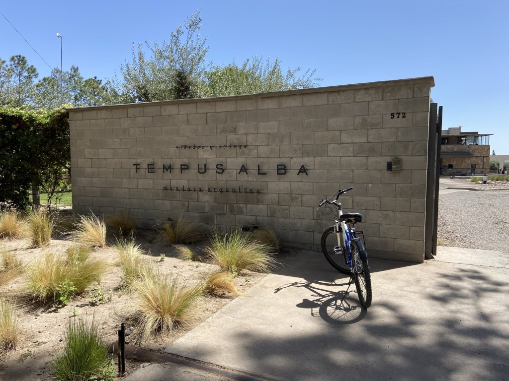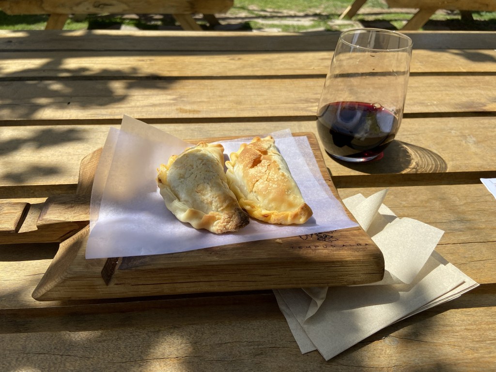 It’s not far at all from this point to the first winery, Tempus Alba, where one can do a free self-guided tour and then there is the option to do a tasting of 3 wines in the restaurant upstairs – but I didn’t fancy this so instead took a seat in the garden and had an early lunch (it was 12pm at this stage) of empanadas and a glass of Malbec.