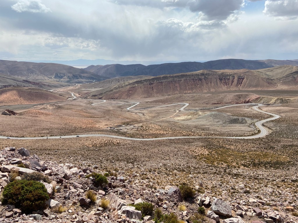 Well the road did prove fairly dreadful – 21km in length, very rocky and corrugated making it a bone jarring journey indeed! But I found that as long as I stayed in second gear and kept my speed down, it was just about bearable. And I even spotted a condor circling lazily overhead at one point, which went a long way to relieving the tedium of the drive. Surprisingly, as I got higher up and the road changed from straight uphill to switchbacks, the surface improved slightly – it was still rocky but somehow less corrugated. I even managed to get into third gear occasionally! It still took 45 minutes to make the 21 km journey and I was very relieved to finally reach the 4350m summit which is the main viewpoint.