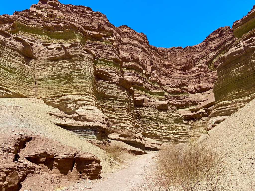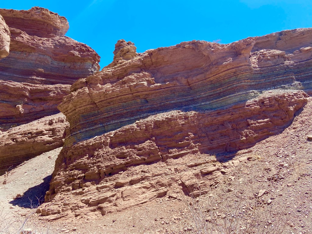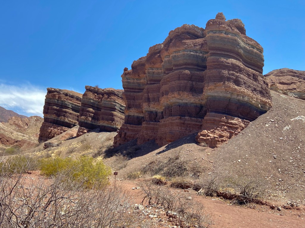 Day 4 was a very long day indeed! The journey from Salta to Cafayate is on a fully paved road and, according to Google maps, should take just over 3 hours. The first 2 hours is tedious, passing through numerous busy villages between Salta and a town called Coronel Moldes. Traffic is fairly heavy and progress is slow. But then one reaches the final section, the Quebrada de las Conchas, and progress slows down further as the jaw-dropping scenery tempts one to pull over repeatedly to take photos or to explore the signposted attractions along the way. It took me 4 hours to drive the final 68 km section of the road because I stopped so many times – including a one-hour hike at Los Estratos to explore these spectacularly colourful mountains.