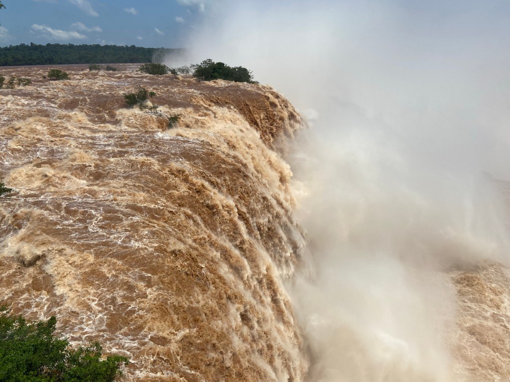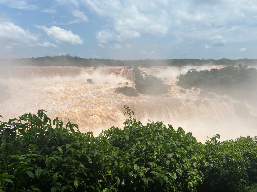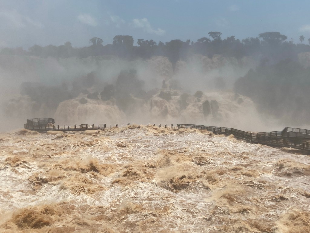 I ended up having an absolutely fabulous day. The heavy rain which had been thundering down most of the night, had stopped – there was a fairly low cloud cover initially but this lifted and the sun even appeared eventually. The Devils Throat walkways which go across part of the falls, were shut due to being partially submerged, but the remaining walkways were open and the views over the falls were spectacular.