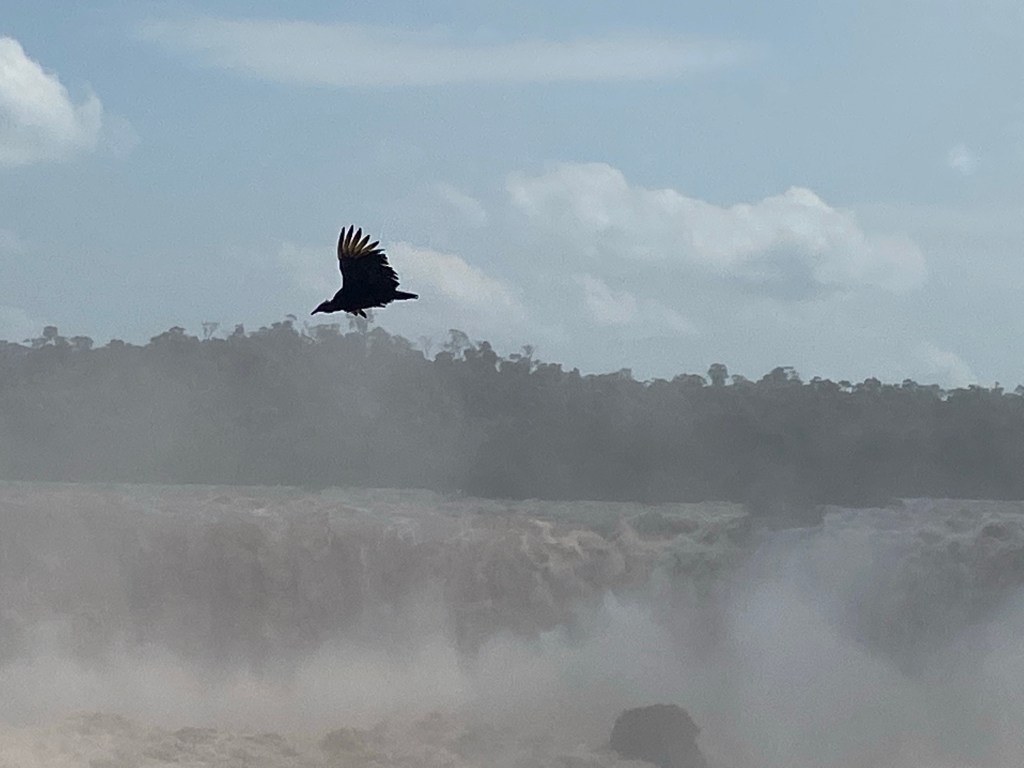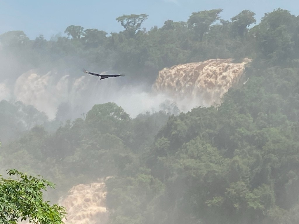 The circuit is relatively short and there is a one-way system in place, but there are various points where one can leave the trail and either walk back along the roadside to an earlier point to see parts of the trail again, or just to head to the restaurant or the bus stop back to the visitor centre if you’ve had enough for any reason. Unlike at Macchu Picchu, nobody cares how many times you go round – I went round the entire circuit twice as I’d noticed the skies were clearer by the time I completed the circuit the first time, than they had been when I’d started, and I wanted to see if the earlier views had opened up more – they had. There were even, now, condors circling lazily over the falls, which hadn’t been there earlier – I spent quite some time just hanging around in a single spot, enjoying watching them gliding effortlessly on the thermals.
