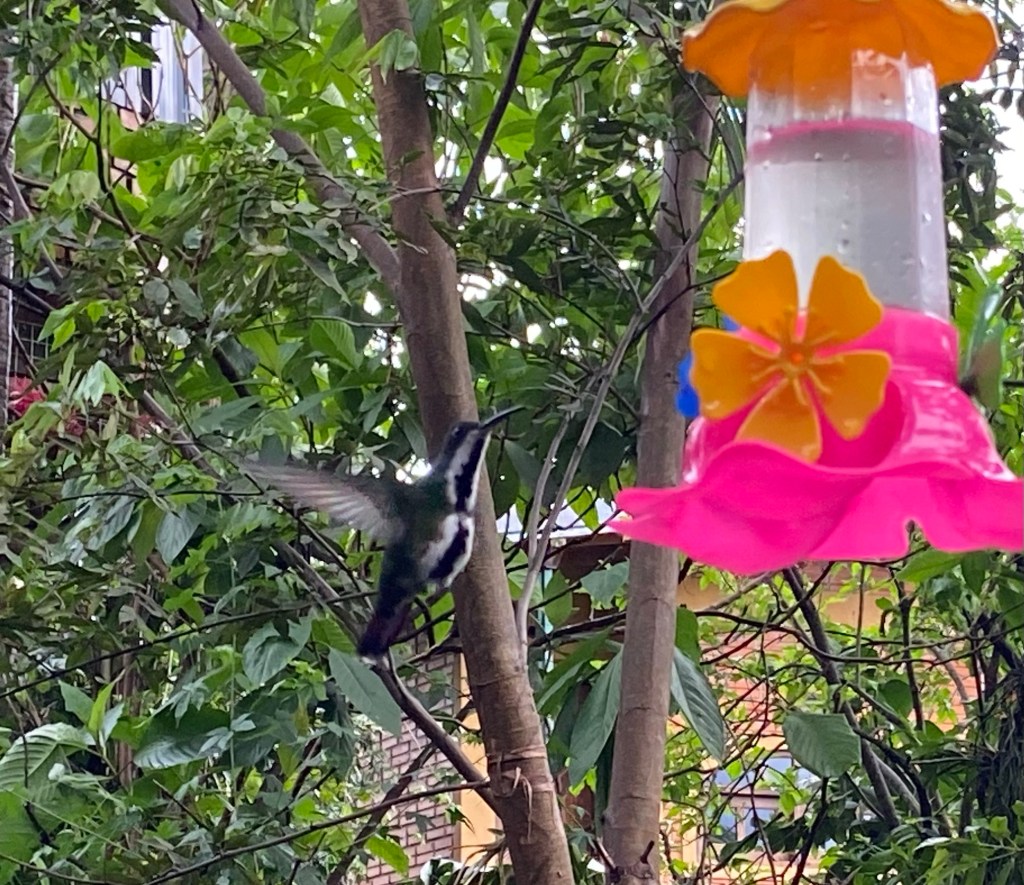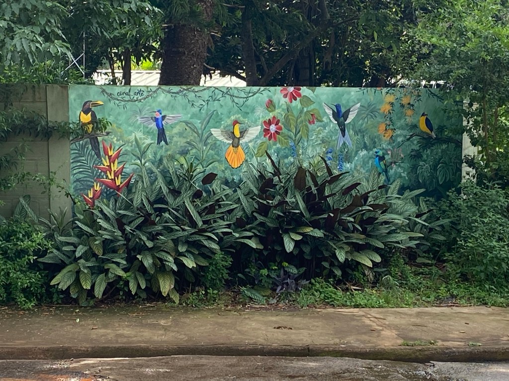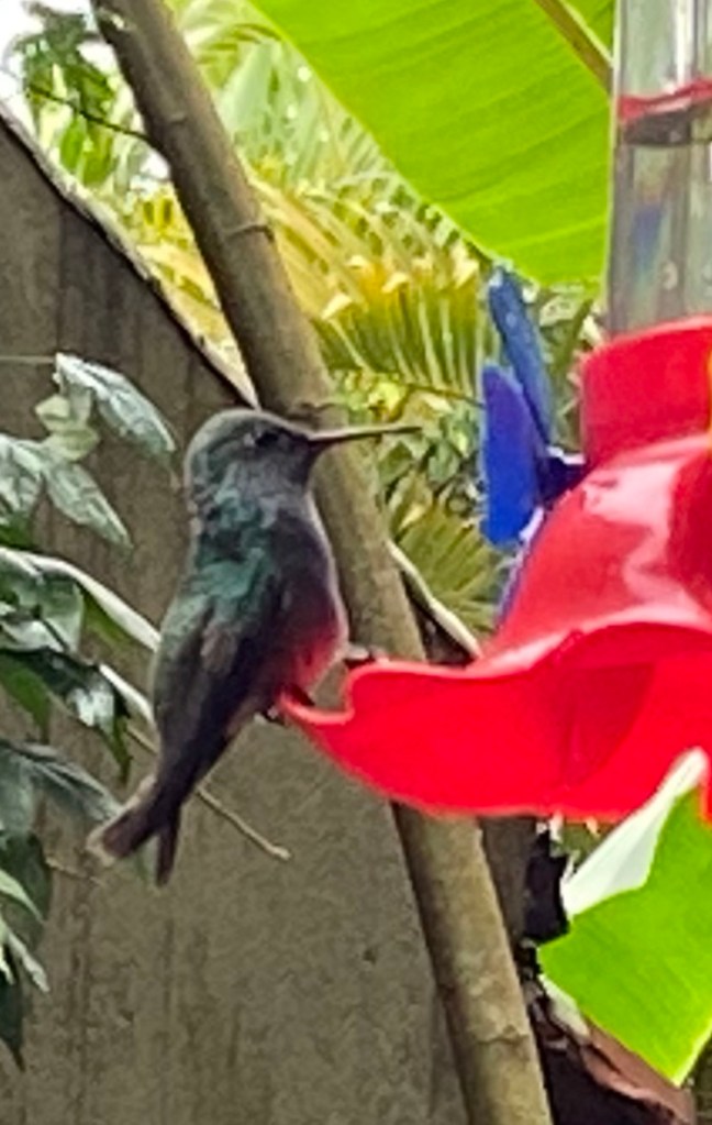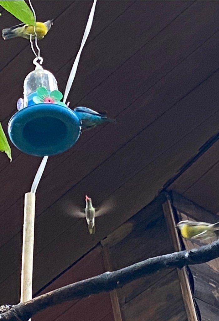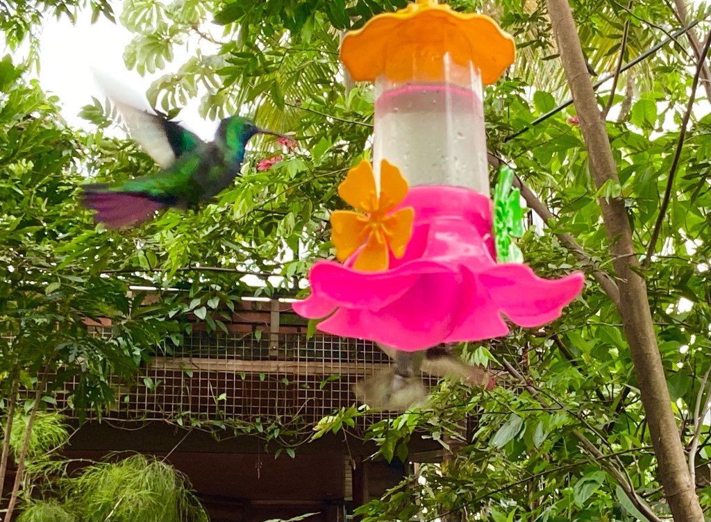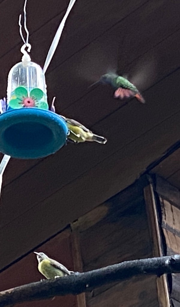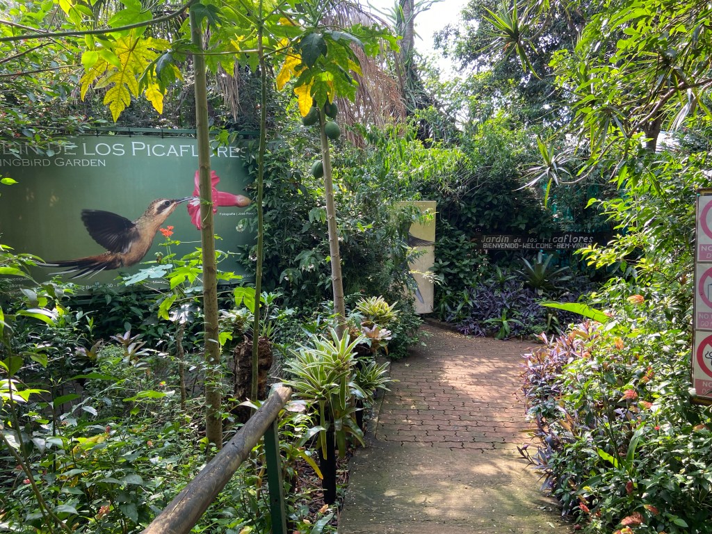 I had, earlier, spotted a hummingbird garden across the road from my accommodation – it had been closed at the time but a quick Google search had revealed it would be open from 3-6pm. Thankfully I was able to take advantage of a brief respite from the rain, to pay a visit, which was absolutely magical. I have never seen so many hummingbirds in one place – they were quite unperturbed by me or any of the other tourists who were watching them, and would buzz right past us on their way to and from the various colourful water containers hanging from the trees. Lots of other colourful little birds besides the hummingbirds – we were all transfixed watching them dart back and forth around this beautiful setting.