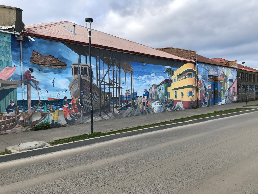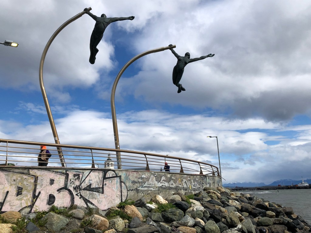 A few more pictures below from Puerto Natales – it turns out that the beautiful statues on the waterfront of two people, arms outstretched, hanging off curved posts, is titled “Monumento al Viento” (Monument to the wind), so clearly the windy conditions are fairly typical! I also particularly enjoyed spotting dustbins borne by varying colourful characters , including Bart and Homer!