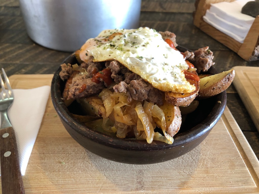 Puerto Natales, despite the wind, is a lovely town, with an abundance of friendly, cosy and reasonably priced coffee shops and restaurants providing respite from the bracing conditions. I wandered into one such establishment, a cafe / restaurant called Wild, and demolished a bowl of chips covered in beef, onions, cheese and a fried egg – washed down with a hot chocolate with rum, both of which warmed me up nicely.