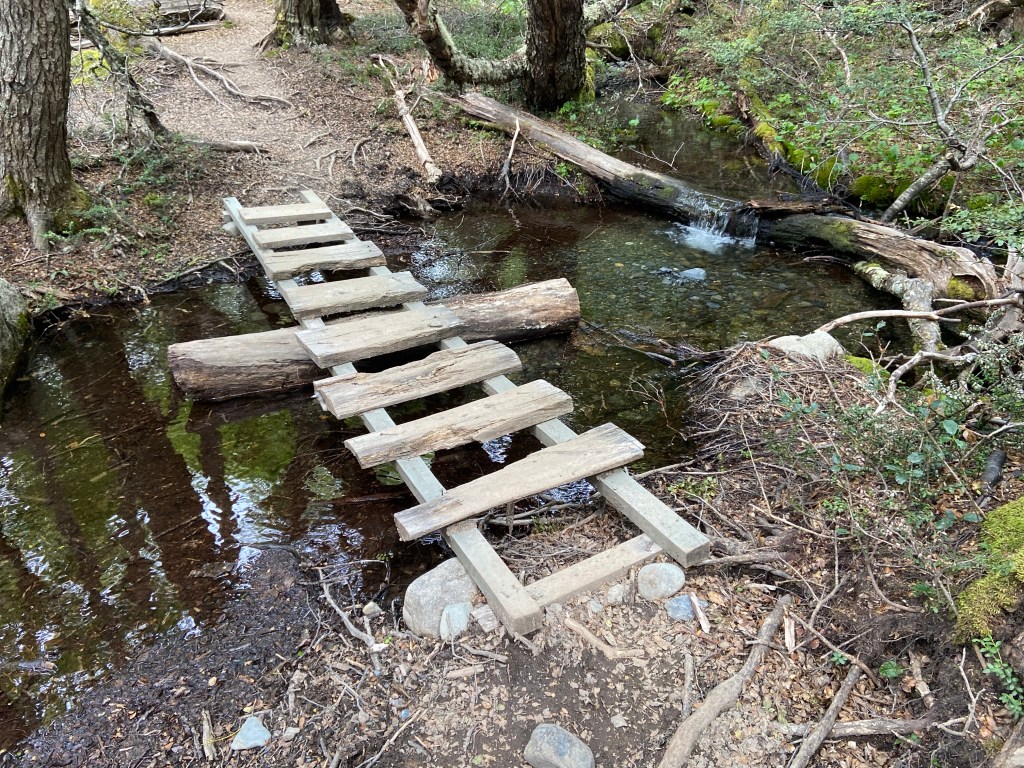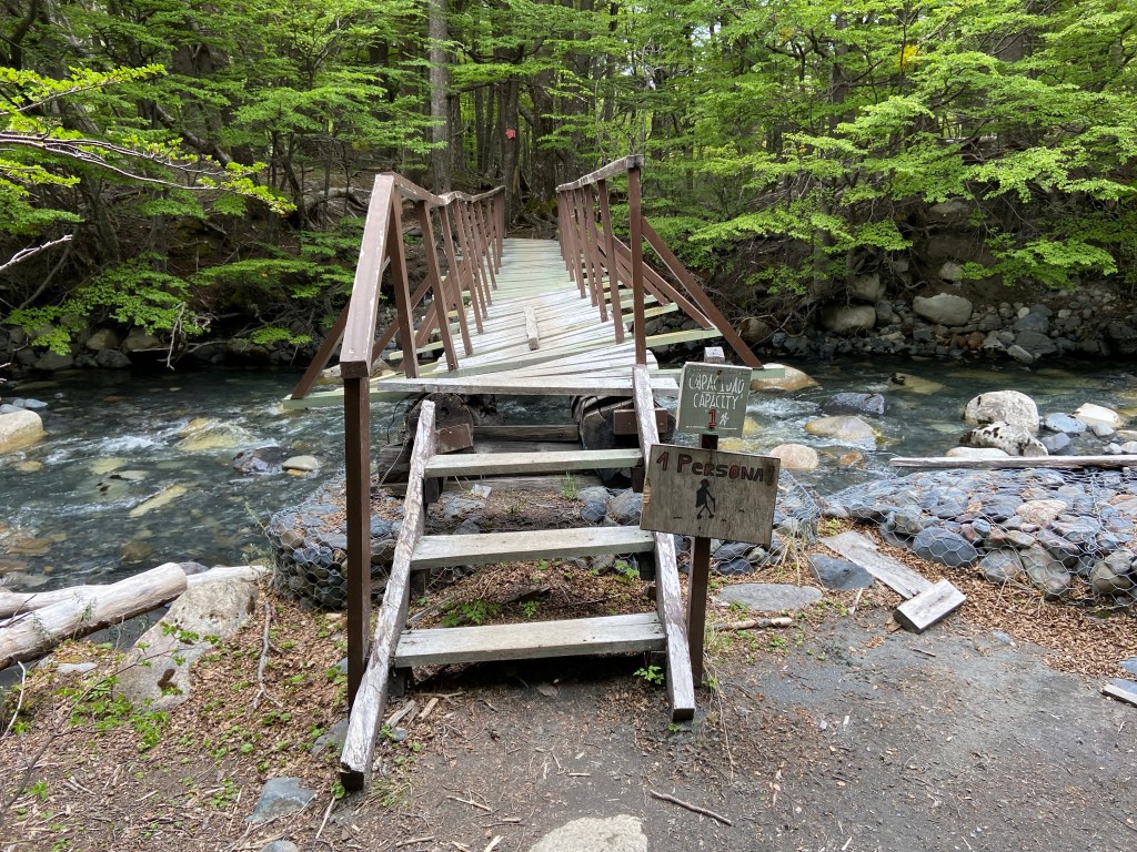 I set off at 9, feeling quite stiff, walking a bit slowly at first but hit my stride after about 20 minutes. This was another really enjoyable walk, mostly through forest with occasional clearings giving glorious views. I kept bumping into Andy and Claire, a British couple I’d met the first day, and they kindly took the below pictures for me, with the final view of Lago Dickson as we headed away from Dickson towards Perros, and the view of Lago Perros and Perros Glacier shortly before arriving at Los Perros camp. I particularly loved all the different bridges we encountered on the way.