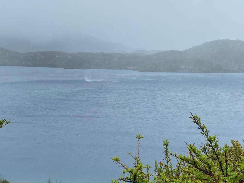 This was another miserable day – it rained or snowed on and off, mostly on, the entire day. There were very high winds a lot of the time, making the hiking rather unpleasant; I was passing lots of W hikers heading the other way, all looking absolutely miserable. Despite this, there were a few very good views along the way, though the peaks were all still in cloud.