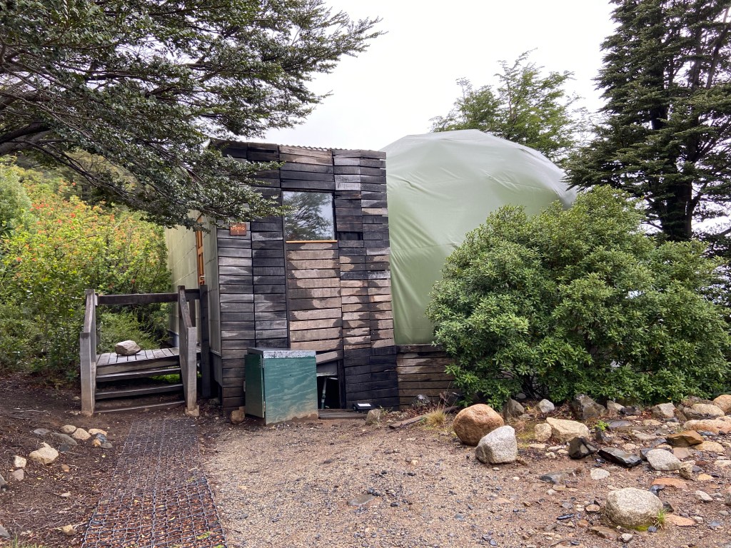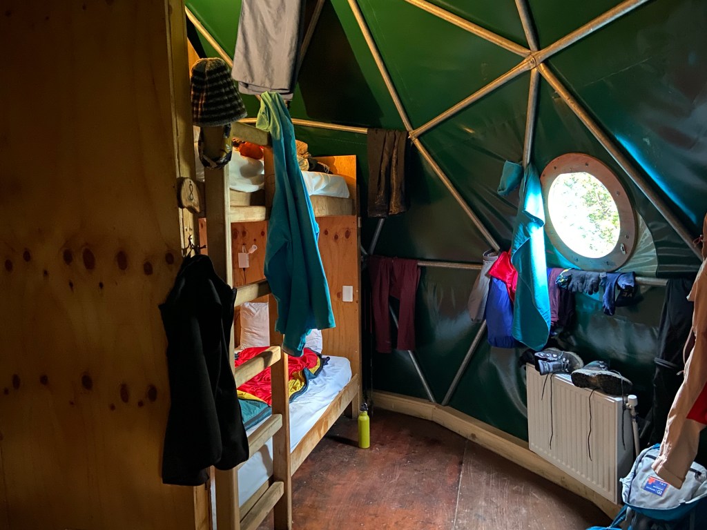 I arrived at Frances at 4pm to be told I was booked into the refuge for the night – I had been expecting to be in a tent. I wasn’t so happy to find I needed to walk another 300m downhill to find the refuge – I was very wet and cold at this stage, and just wanted to be allocated a tent and able to unpack, worrying that there wouldn’t be sufficient room to do so in a dorm room in the refuge – but I was more than happy once I managed to check in and was showed to a self-contained dome with bunk beds, plenty of radiators and an internal frame on which to hang wet clothes, and en suite toilets and showers. I was allocated a top bunk which was not ideal, with the top rung of the ladder positioned above the level of the bed resulting in some rather complicated contortions to try to get onto it backwards from above – but just about managed to get the knack of it eventually, after a couple of not so successful attempts at trying to swing round onto it sideways to get around the top rung!