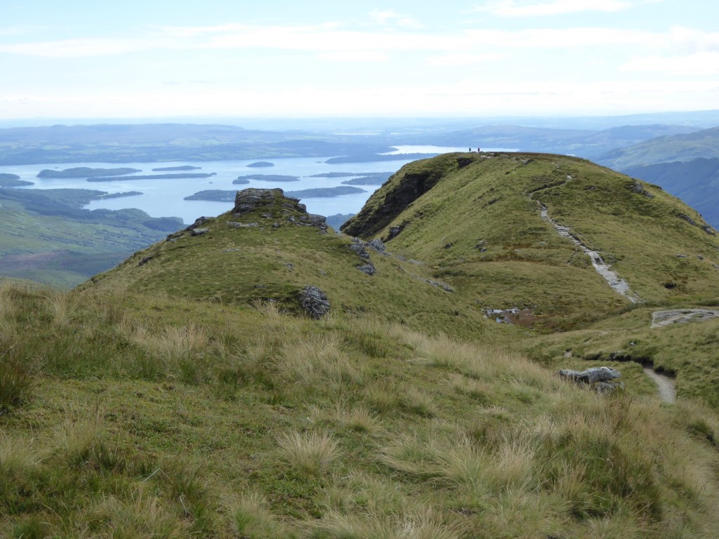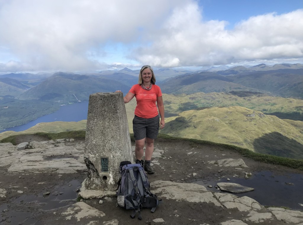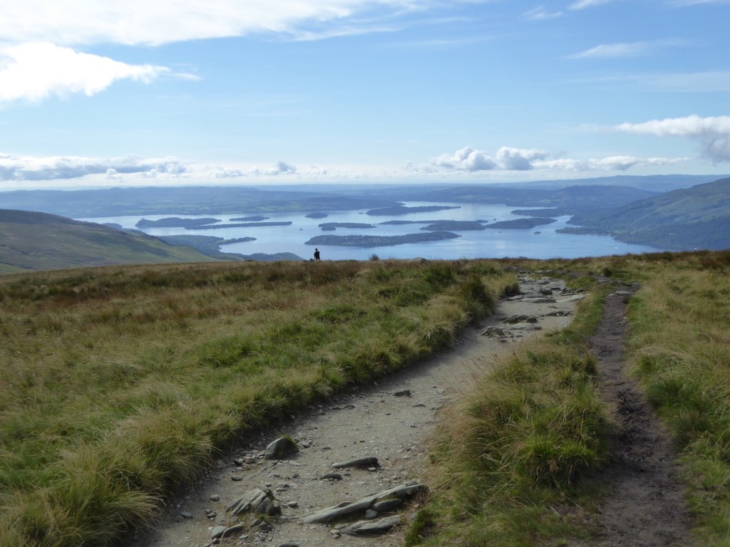 It was the perfect first Munro. A clear path all the way up and back down, glorious views, lovely sunny warm weather, no technical difficulty and no steep or exposed terrain. The only downside was the midges – this was my first real experience of Scottish midges and I soon realised why they are the bane of hillwalkers’ lives. It was impossible to hang about anywhere near the summit cairn as a pool of water at the foot of the cairn had attracted a swarm of them – and even when I tried to sit down about a hundred meters lower down, to eat my lunch, I was immediately surrounded by midges no doubt attracted by my sweaty body. I was absolutely covered in bites by the time I got back to the car.