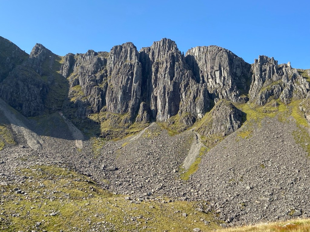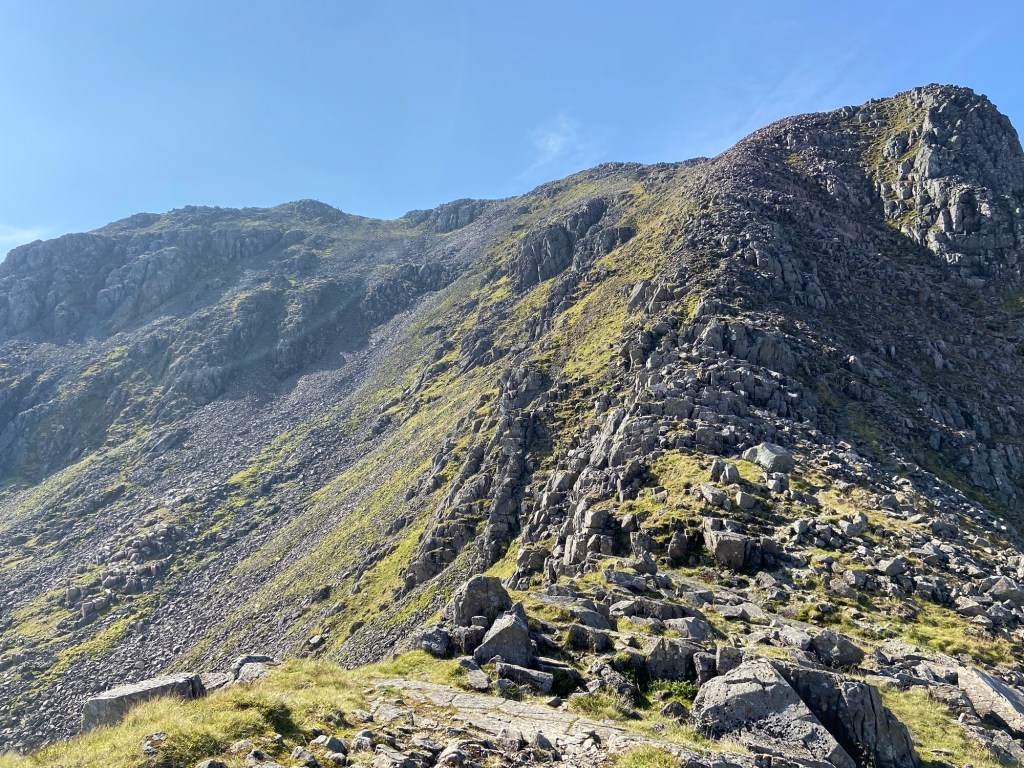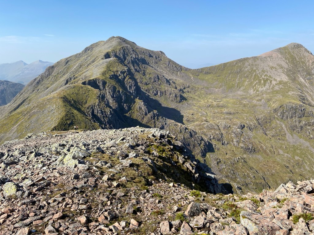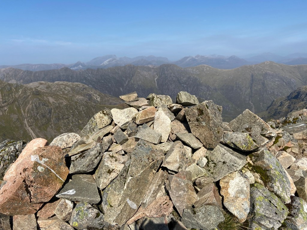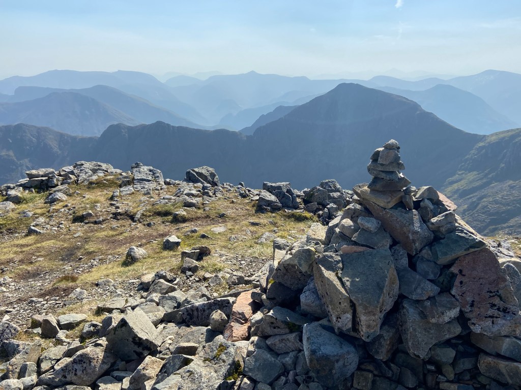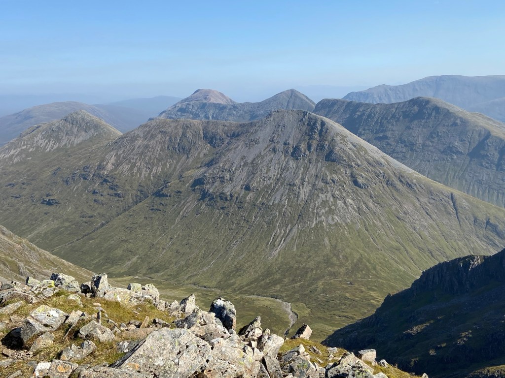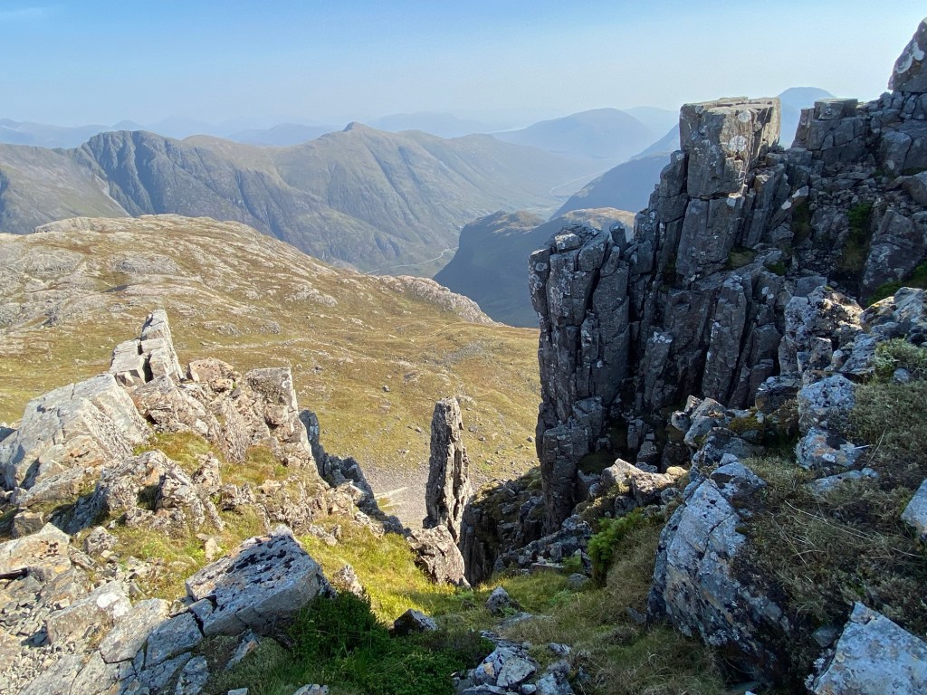 A helicopter was circling overhead as I walked up the lower part of the route – sadly it turned out that it was recovering a body from Stob Coire nan Lochan, of a hiker who had been rteported missing just a few days ago. When I eventually reached the top of Stob Coire nan Lochan, after a long and beautiful hike passing some truly dramatic cliffs, I could completely understand why this route claims so many lives – while there is a clear footpath, the exposure is extreme, and one wrong move could easily see one tumble to one’s death. I took great care on the descent from SCnL to the bealach and on the final semi-scramble up to the top of Bidean.